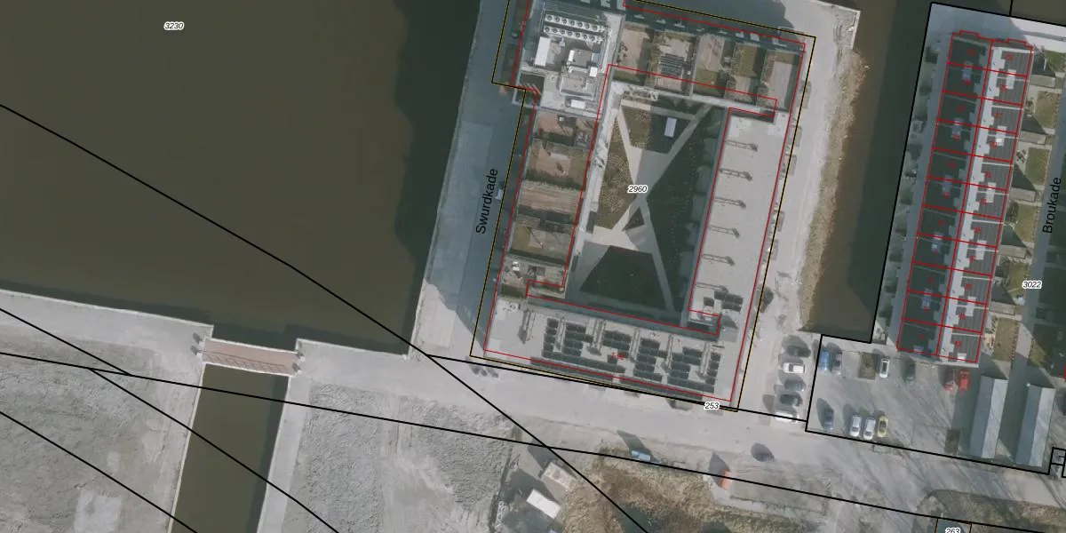 Het perceel waarop Swurdkade 35 staat heeft een oppervlakte van 3836 m². Dit is een zeer groot perceel. De perceeloppervlakte wordt geregistreerd door het Kadaster. Gedetailleerde informatie over de maten van dit perceel kunt u vinden in het rapport Kadastrale kaart met maatvoering van Swurdkade 35.