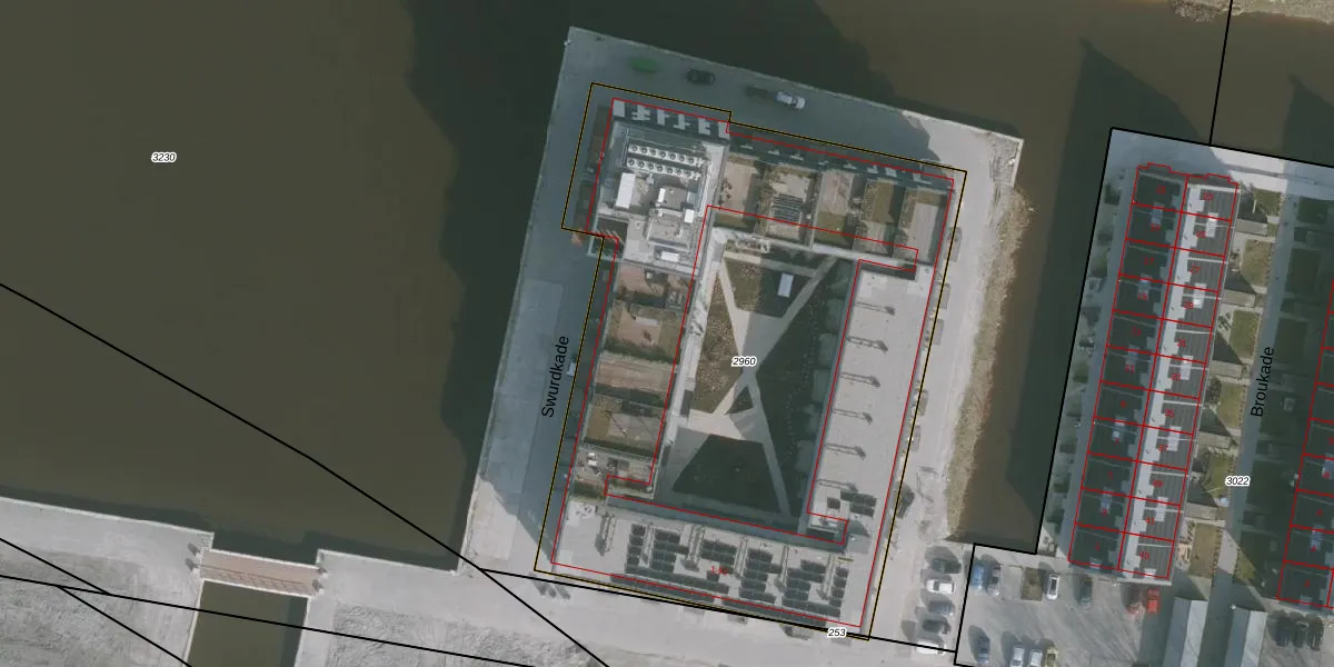 Het perceel waarop Swurdkade 38 staat heeft een oppervlakte van 3836 m². Dit is een zeer groot perceel. De perceeloppervlakte wordt geregistreerd door het Kadaster. Gedetailleerde informatie over de maten van dit perceel kunt u vinden in het rapport Kadastrale kaart met maatvoering van Swurdkade 38.