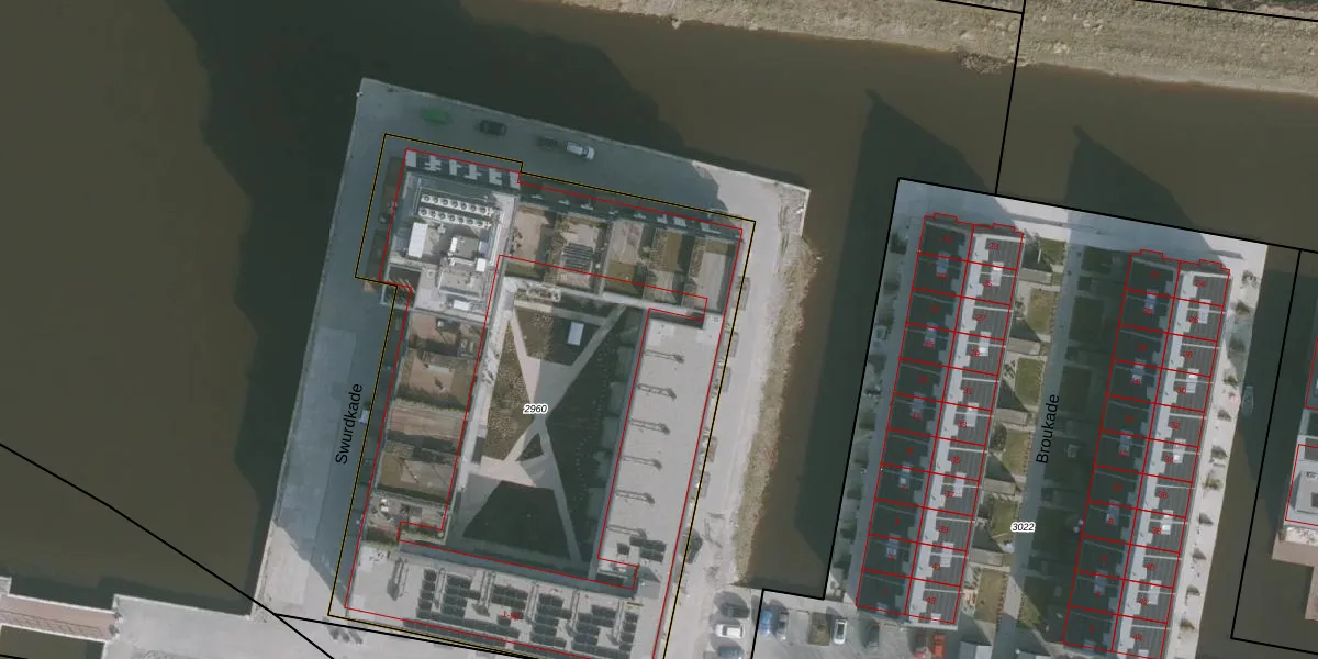 Het perceel waarop Swurdkade 46 staat heeft een oppervlakte van 3836 m². Dit is een zeer groot perceel. De perceeloppervlakte wordt geregistreerd door het Kadaster. Gedetailleerde informatie over de maten van dit perceel kunt u vinden in het rapport Kadastrale kaart met maatvoering van Swurdkade 46.