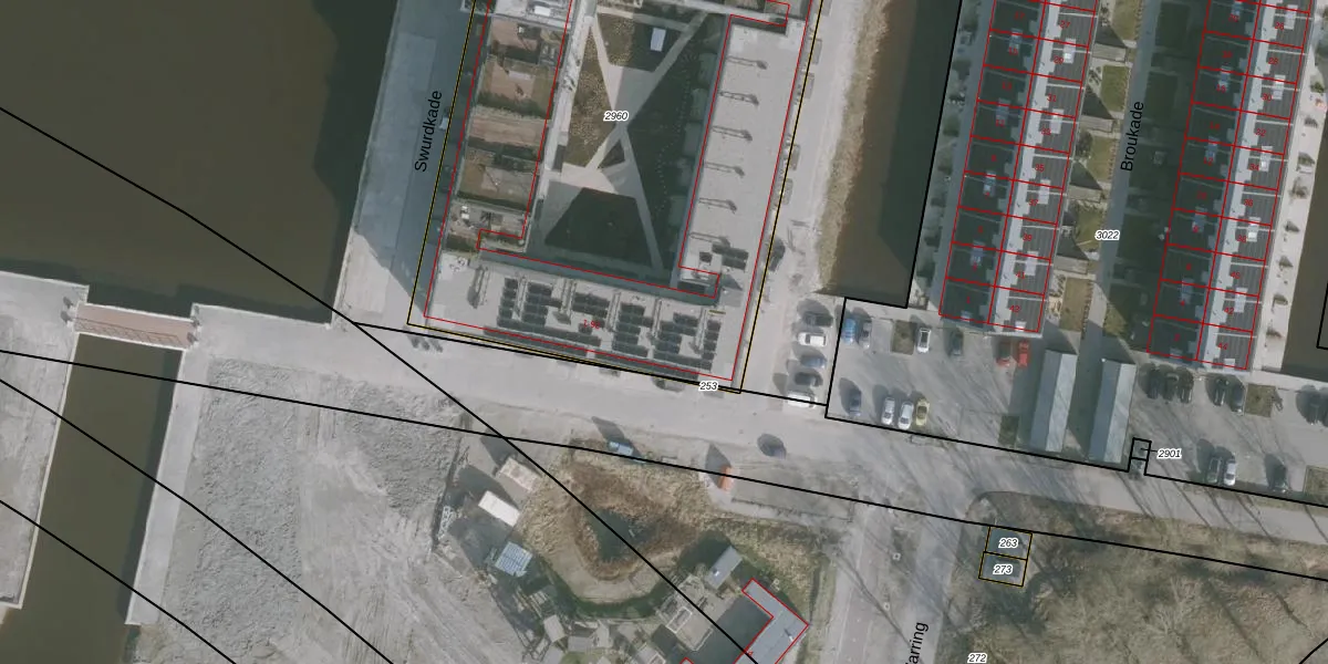 Het perceel waarop Swurdkade 52 staat heeft een oppervlakte van 3836 m². Dit is een zeer groot perceel. De perceeloppervlakte wordt geregistreerd door het Kadaster. Gedetailleerde informatie over de maten van dit perceel kunt u vinden in het rapport Kadastrale kaart met maatvoering van Swurdkade 52.