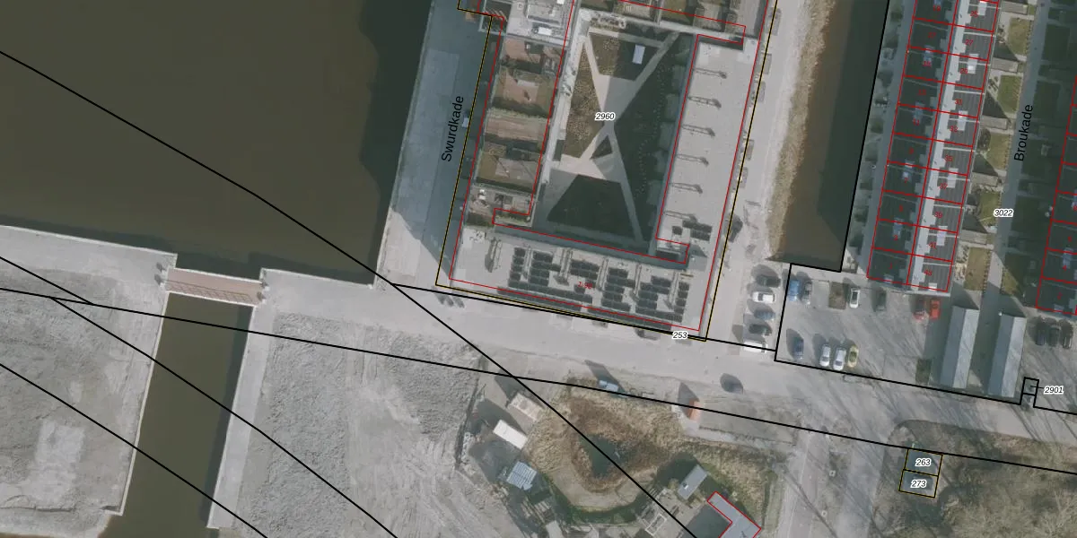 Swurdkade 55 is gelegen op kadastraal perceel HZM00E2960. Deze kadastrale aanduiding is uniek en wordt gebruikt door het Kadaster om eigendomsrechten en andere zakelijke rechten vast te leggen. Het perceel maakt onderdeel uit van de kadastrale gemeente Huizum.