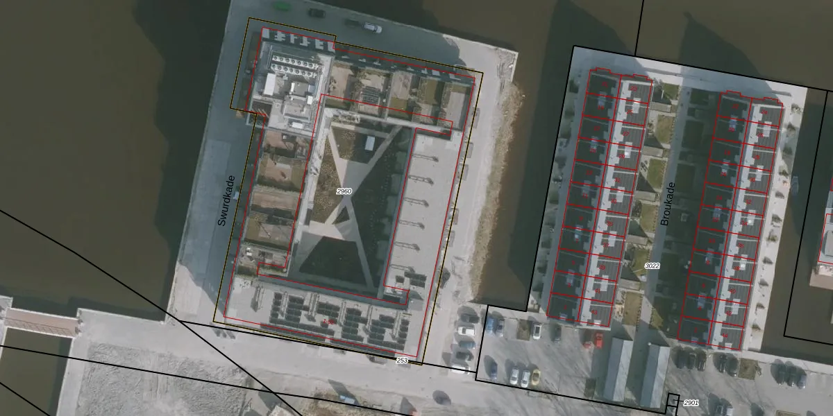 Swurdkade 71 is gelegen op kadastraal perceel HZM00E2960. Deze kadastrale aanduiding is uniek en wordt gebruikt door het Kadaster om eigendomsrechten en andere zakelijke rechten vast te leggen. Het perceel maakt onderdeel uit van de kadastrale gemeente Huizum.