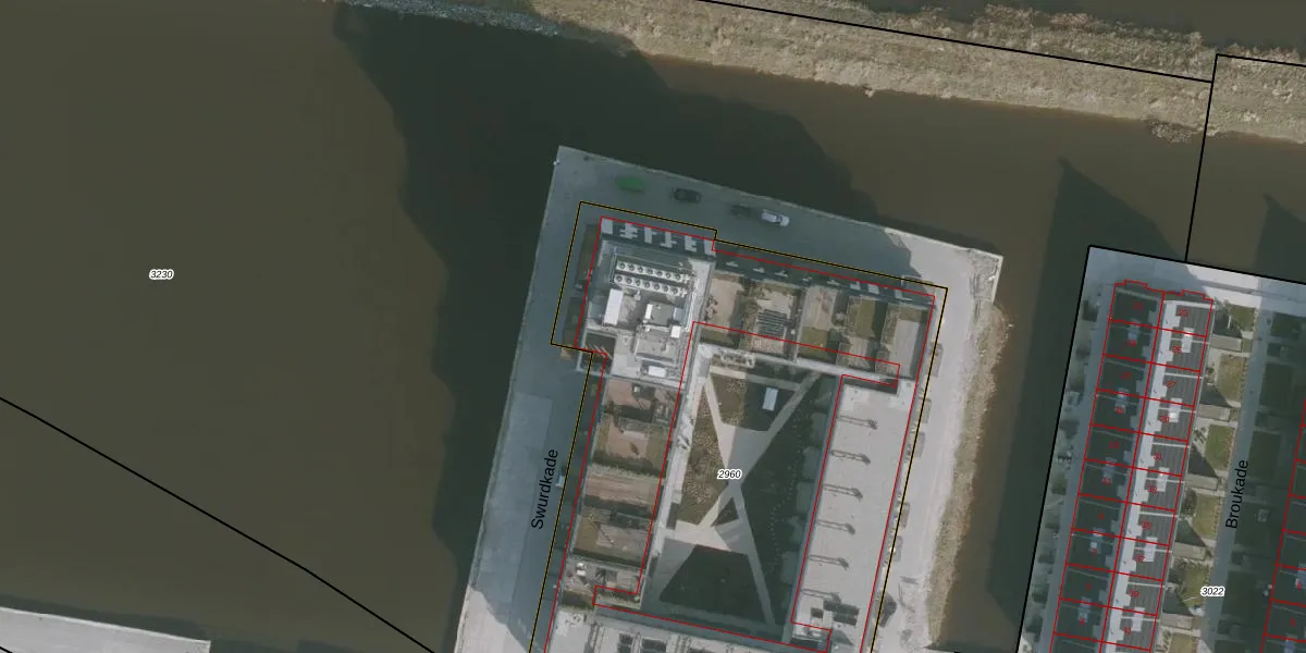 Het perceel waarop Swurdkade 77 staat heeft een oppervlakte van 3836 m². Dit is een zeer groot perceel. De perceeloppervlakte wordt geregistreerd door het Kadaster. Gedetailleerde informatie over de maten van dit perceel kunt u vinden in het rapport Kadastrale kaart met maatvoering van Swurdkade 77.