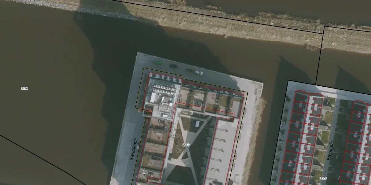 Het perceel waarop Swurdkade 79 staat heeft een oppervlakte van 3836 m². Dit is een zeer groot perceel. De perceeloppervlakte wordt geregistreerd door het Kadaster. Gedetailleerde informatie over de maten van dit perceel kunt u vinden in het rapport Kadastrale kaart met maatvoering van Swurdkade 79.