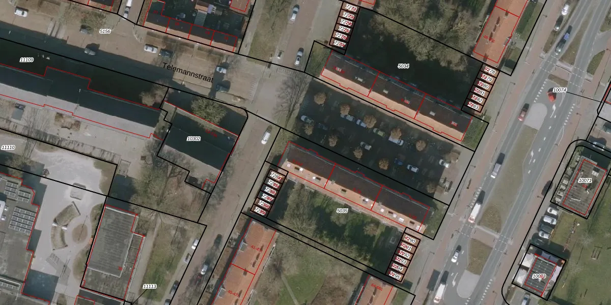 Het perceel waarop Telemannstraat 11 staat heeft een oppervlakte van 1477 m². Dit is een zeer groot perceel. De perceeloppervlakte wordt geregistreerd door het Kadaster. Gedetailleerde informatie over de maten van dit perceel kunt u vinden in het rapport Kadastrale kaart met maatvoering van Telemannstraat 11.
