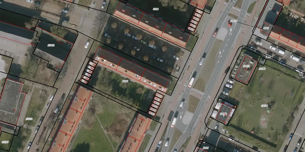 Het perceel waarop Telemannstraat 3-b staat heeft een oppervlakte van 1477 m². Dit is een zeer groot perceel. De perceeloppervlakte wordt geregistreerd door het Kadaster. Gedetailleerde informatie over de maten van dit perceel kunt u vinden in het rapport Kadastrale kaart met maatvoering van Telemannstraat 3-b.