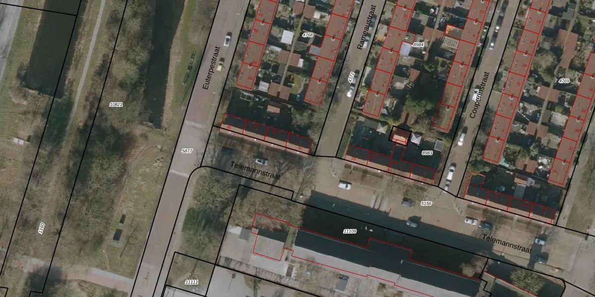 Het perceel waarop Telemannstraat 30 staat heeft een oppervlakte van 2560 m². Dit is een zeer groot perceel. De perceeloppervlakte wordt geregistreerd door het Kadaster. Gedetailleerde informatie over de maten van dit perceel kunt u vinden in het rapport Kadastrale kaart met maatvoering van Telemannstraat 30.