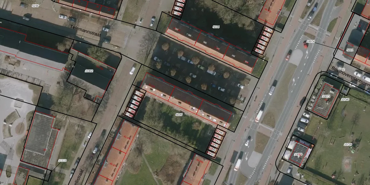 Het perceel waarop Telemannstraat 7 staat heeft een oppervlakte van 1477 m². Dit is een zeer groot perceel. De perceeloppervlakte wordt geregistreerd door het Kadaster. Gedetailleerde informatie over de maten van dit perceel kunt u vinden in het rapport Kadastrale kaart met maatvoering van Telemannstraat 7.