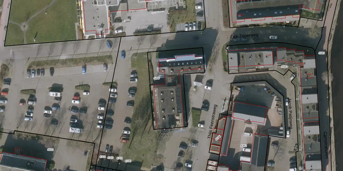 Het adres is gelegen op perceel 5496 in de sectie E en de kadastrale gemeente Leeuwarden. De kadastrale aanduiding is aldus LWD00-E-5496. De gemiddelde perceelgrootte in Leeuwarden is 1522,59 m². Dit perceel is kleiner: de perceeloppervlakte bedraagt 1077 m². Het grootste perceel in de kadastrale gemeente is 1,54 km². Het kleinste perceel heeft een oppervlakte van 0 m². Op het perceel liggen in totaal 39 adressen. De huidige grenzen van het perceel zijn digitaal in de Basisregistratie Kadaster (BRK) geregistreerd op 25-10-1999.