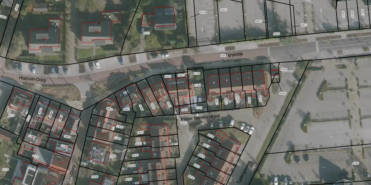Het adres is gelegen op perceel 5562 in de sectie B en de kadastrale gemeente Huizum. De kadastrale aanduiding is aldus HZM00-B-5562. De gemiddelde perceelgrootte in Huizum is 1504,31 m². Dit perceel is kleiner: de perceeloppervlakte bedraagt 107 m². Het kleinste perceel in de kadastrale gemeente is 0 m² groot. De grootste perceeloppervlakte is 75,1 ha. Op het perceel bevinden zich geen andere adressen. In de Basisregistratie Kadaster (BRK) werden de grenzen van het perceel geregistreerd op 15-01-1998.