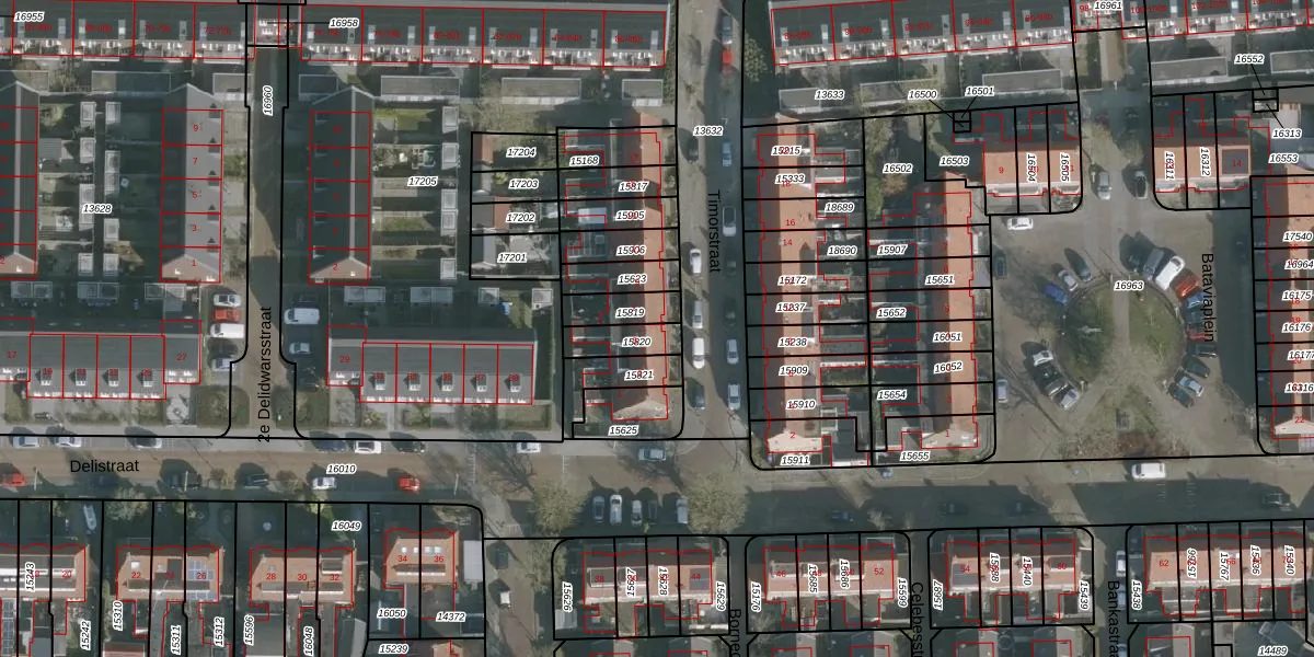 Het perceel waarop Timorstraat 5 staat heeft een oppervlakte van 87 m². Dit is een klein perceel. De perceeloppervlakte wordt geregistreerd door het Kadaster. Gedetailleerde informatie over de maten van dit perceel kunt u vinden in het rapport Kadastrale kaart met maatvoering van Timorstraat 5.