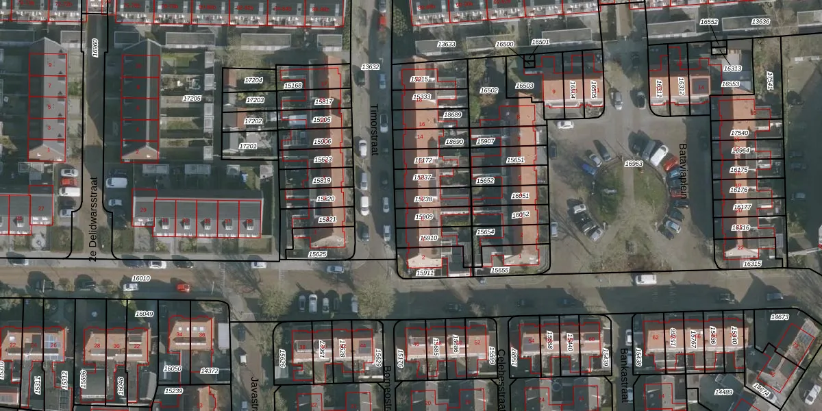 Het perceel waarop Timorstraat 8 staat heeft een oppervlakte van 89 m². Dit is een klein perceel. De perceeloppervlakte wordt geregistreerd door het Kadaster. Gedetailleerde informatie over de maten van dit perceel kunt u vinden in het rapport Kadastrale kaart met maatvoering van Timorstraat 8.