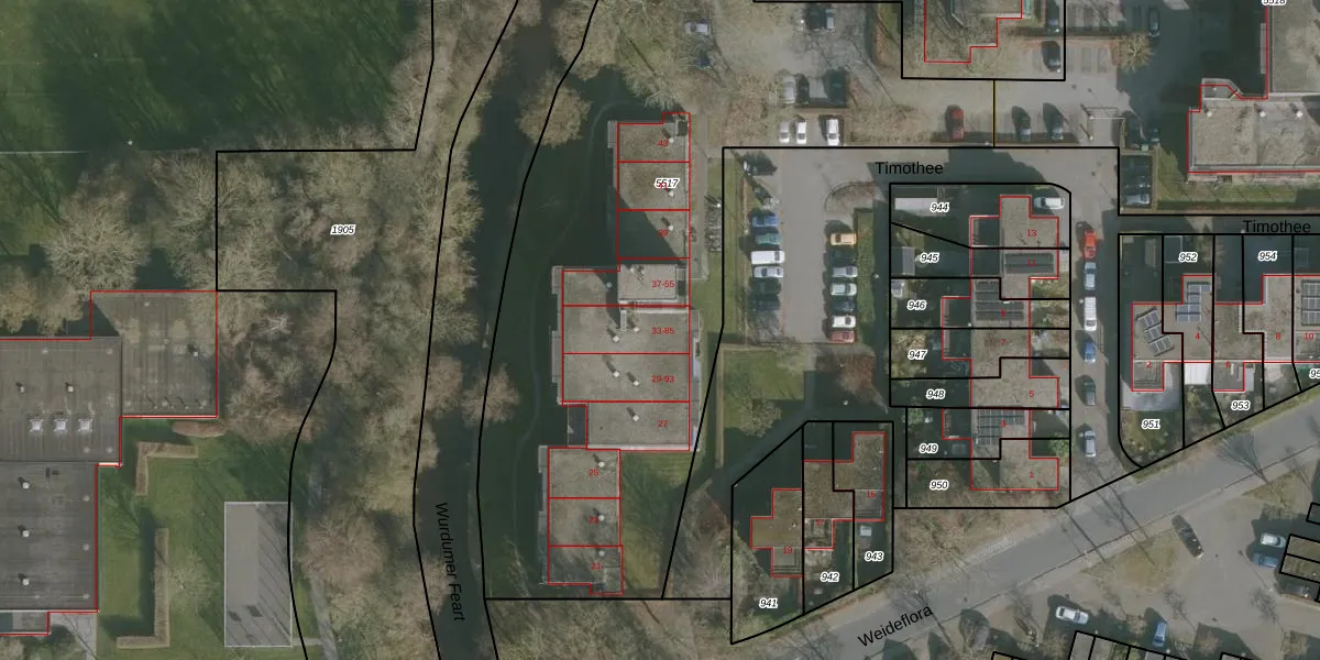 Het perceel waarop Timothee 35 staat heeft een oppervlakte van 4274 m². Dit is een zeer groot perceel. De perceeloppervlakte wordt geregistreerd door het Kadaster. Gedetailleerde informatie over de maten van dit perceel kunt u vinden in het rapport Kadastrale kaart met maatvoering van Timothee 35.