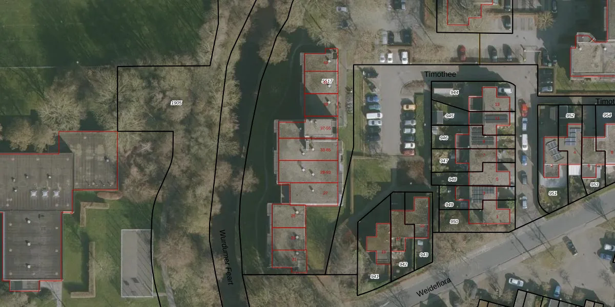 Het perceel waarop Timothee 67 staat heeft een oppervlakte van 4274 m². Dit is een zeer groot perceel. De perceeloppervlakte wordt geregistreerd door het Kadaster. Gedetailleerde informatie over de maten van dit perceel kunt u vinden in het rapport Kadastrale kaart met maatvoering van Timothee 67.