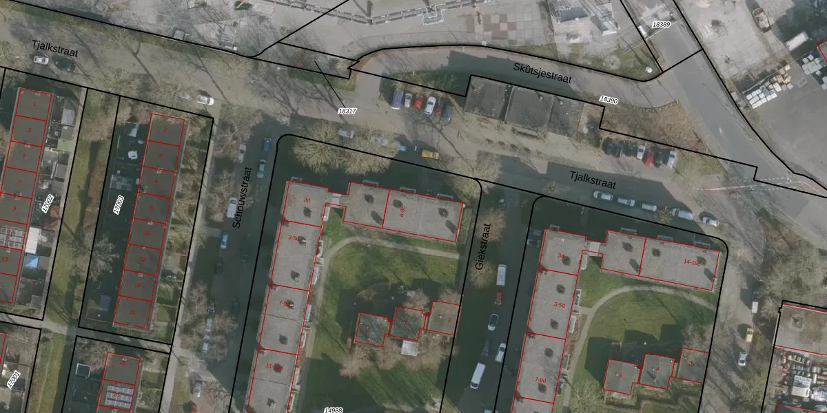 Het perceel waarop Tjalkstraat 6-b staat heeft een oppervlakte van 6600 m². Dit is een zeer groot perceel. De perceeloppervlakte wordt geregistreerd door het Kadaster. Gedetailleerde informatie over de maten van dit perceel kunt u vinden in het rapport Kadastrale kaart met maatvoering van Tjalkstraat 6-b.