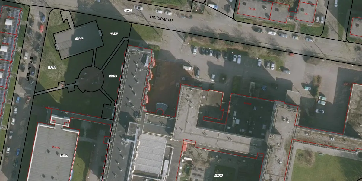 Het perceel waarop Tjotterstraat 452 staat heeft een oppervlakte van 1,5 ha. Dit is een zeer groot perceel. De perceeloppervlakte wordt geregistreerd door het Kadaster. Gedetailleerde informatie over de maten van dit perceel kunt u vinden in het rapport Kadastrale kaart met maatvoering van Tjotterstraat 452.