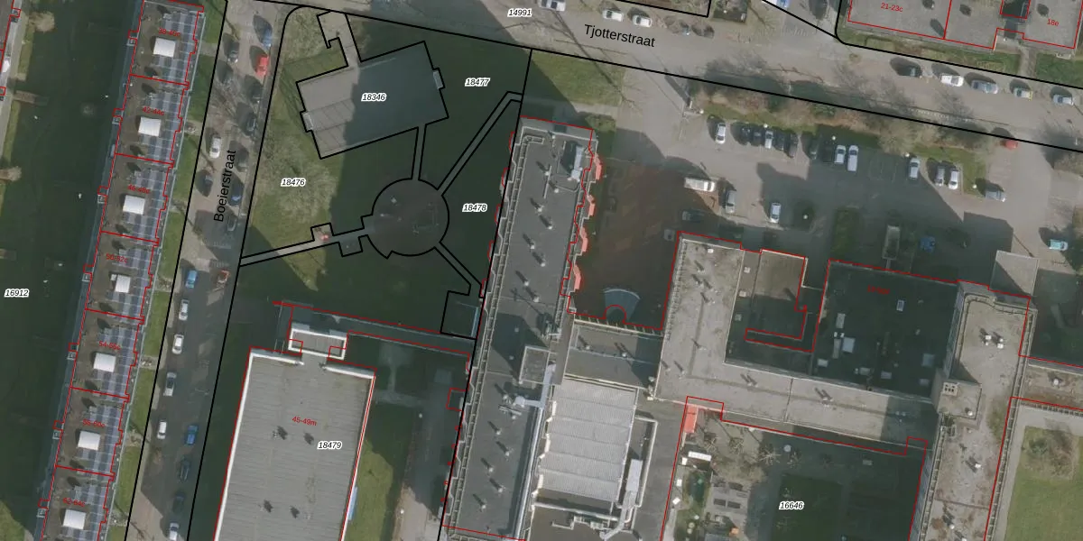 Het perceel waarop Tjotterstraat 84 staat heeft een oppervlakte van 1,5 ha. Dit is een zeer groot perceel. De perceeloppervlakte wordt geregistreerd door het Kadaster. Gedetailleerde informatie over de maten van dit perceel kunt u vinden in het rapport Kadastrale kaart met maatvoering van Tjotterstraat 84.