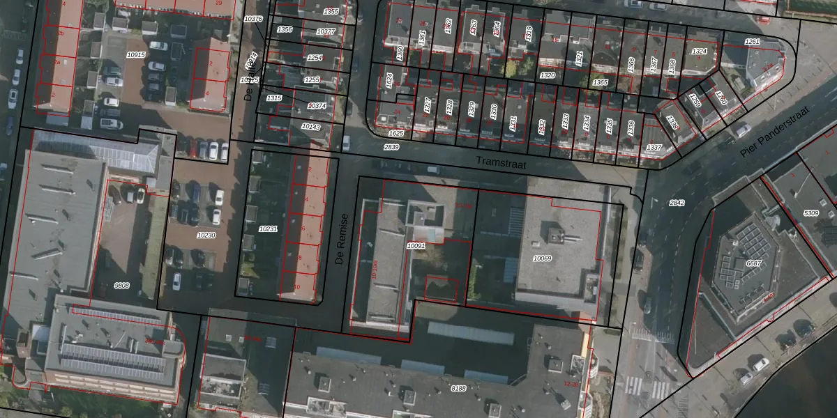 Het perceel waarop Tramstraat 1-r staat heeft een oppervlakte van 976 m². Dit is een groot perceel. De perceeloppervlakte wordt geregistreerd door het Kadaster. Gedetailleerde informatie over de maten van dit perceel kunt u vinden in het rapport Kadastrale kaart met maatvoering van Tramstraat 1-r.
