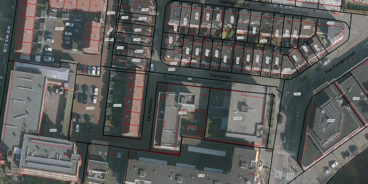 Tramstraat 1-d is gelegen op kadastraal perceel LWD00D10091. Deze kadastrale aanduiding is uniek en wordt gebruikt door het Kadaster om eigendomsrechten en andere zakelijke rechten vast te leggen. Het perceel maakt onderdeel uit van de kadastrale gemeente Leeuwarden.