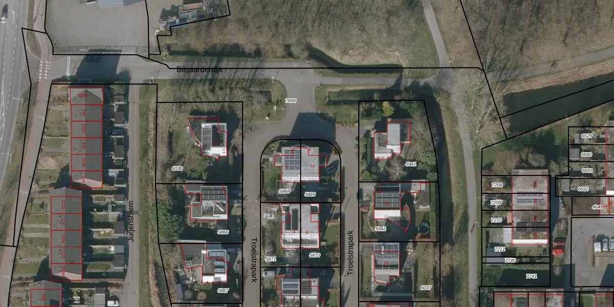 Gebruik de zoekbalk of klik op een perceel voor informatie over de adressen binnen dit perceel.