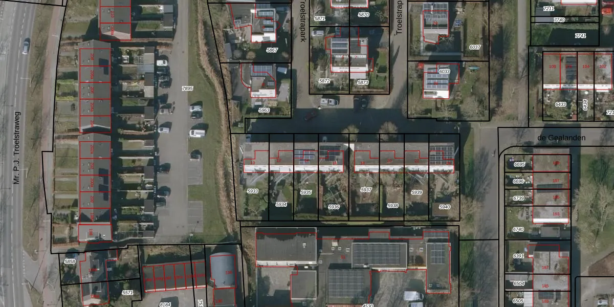 Troelstrapark 14 is gelegen op kadastraal perceel LWD00E5935. Deze kadastrale aanduiding is uniek en wordt gebruikt door het Kadaster om eigendomsrechten en andere zakelijke rechten vast te leggen. Het perceel maakt onderdeel uit van de kadastrale gemeente Leeuwarden.