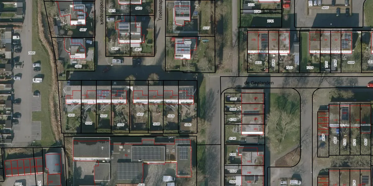 Gebruik de zoekbalk of klik op een perceel voor informatie over de adressen binnen dit perceel.
