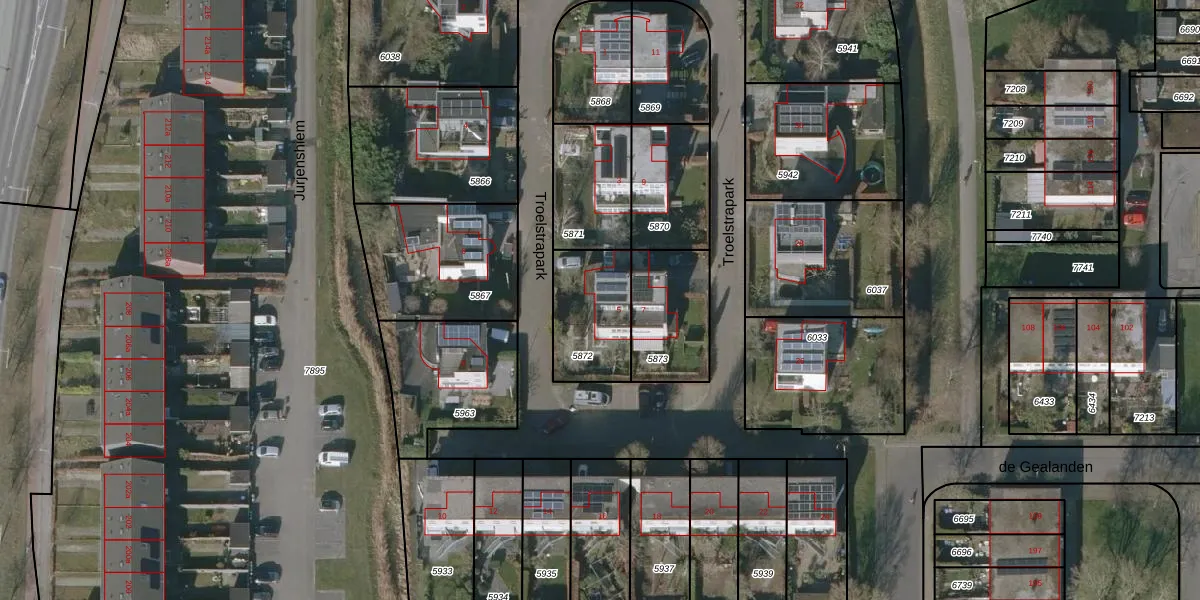 Troelstrapark 5 is gelegen op kadastraal perceel LWD00E5872. Deze kadastrale aanduiding is uniek en wordt gebruikt door het Kadaster om eigendomsrechten en andere zakelijke rechten vast te leggen. Het perceel maakt onderdeel uit van de kadastrale gemeente Leeuwarden.