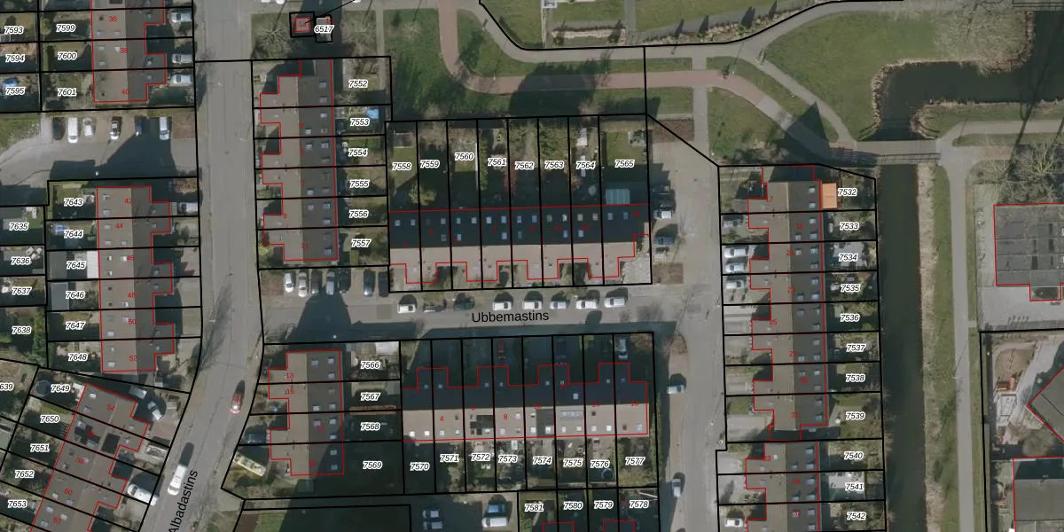 Ubbemastins 9 is gelegen op kadastraal perceel LWD00K7562. Deze kadastrale aanduiding is uniek en wordt gebruikt door het Kadaster om eigendomsrechten en andere zakelijke rechten vast te leggen. Het perceel maakt onderdeel uit van de kadastrale gemeente Leeuwarden.