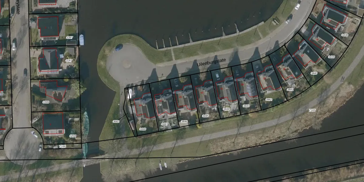Uilenburgstate 45 is gelegen op kadastraal perceel LWD00K3446. Deze kadastrale aanduiding is uniek en wordt gebruikt door het Kadaster om eigendomsrechten en andere zakelijke rechten vast te leggen. Het perceel maakt onderdeel uit van de kadastrale gemeente Leeuwarden.