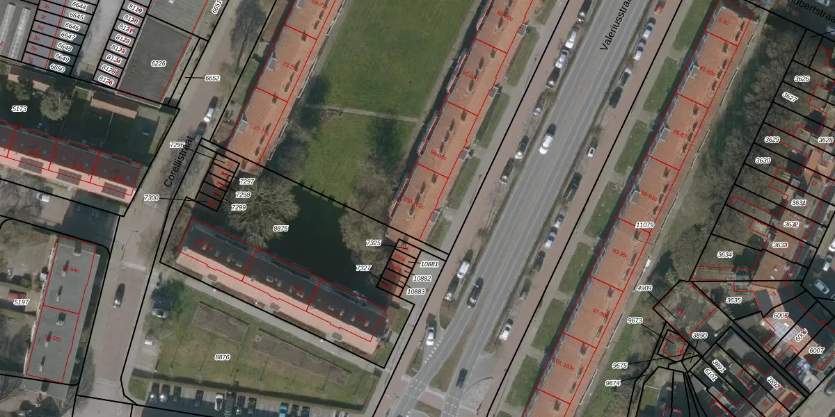 Het perceel waarop Valeriusstraat 102-c staat heeft een oppervlakte van 1,0 ha. Dit is een zeer groot perceel. De perceeloppervlakte wordt geregistreerd door het Kadaster. Gedetailleerde informatie over de maten van dit perceel kunt u vinden in het rapport Kadastrale kaart met maatvoering van Valeriusstraat 102-c.