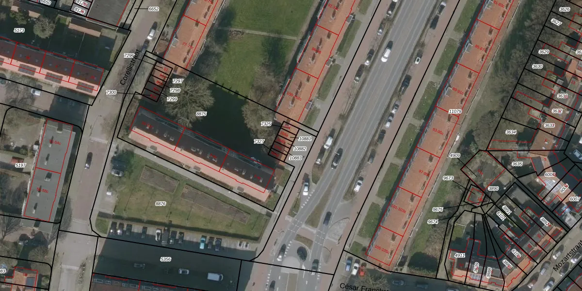 Het perceel waarop Valeriusstraat 104-b staat heeft een oppervlakte van 15 m². Dit is een klein perceel. De perceeloppervlakte wordt geregistreerd door het Kadaster. Gedetailleerde informatie over de maten van dit perceel kunt u vinden in het rapport Kadastrale kaart met maatvoering van Valeriusstraat 104-b.