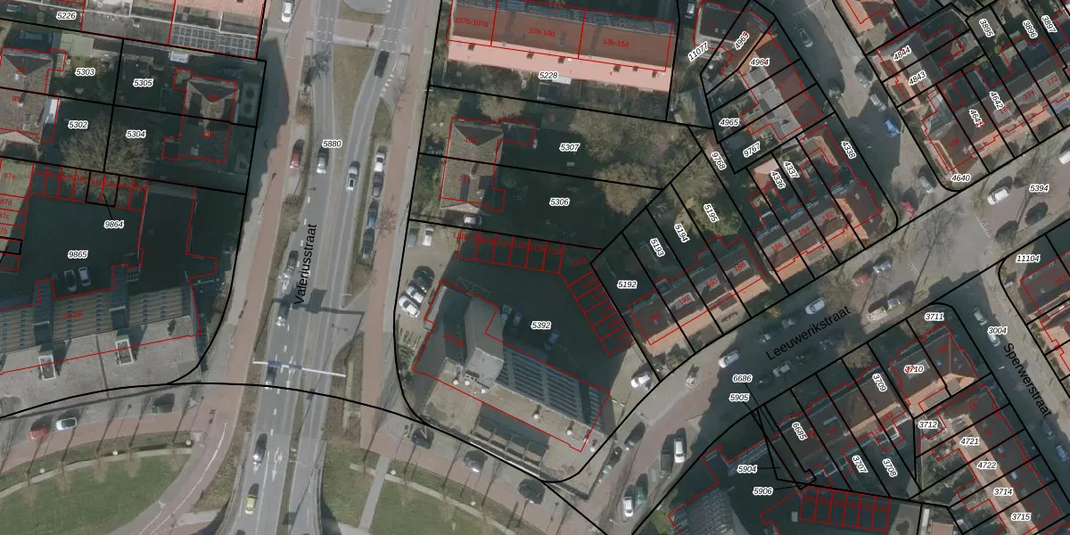 Valeriusstraat 113-e is gelegen op kadastraal perceel LWD00D5392. Deze kadastrale aanduiding is uniek en wordt gebruikt door het Kadaster om eigendomsrechten en andere zakelijke rechten vast te leggen. Het perceel maakt onderdeel uit van de kadastrale gemeente Leeuwarden.