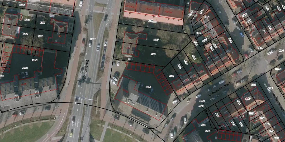 Valeriusstraat 113-d is gelegen op kadastraal perceel LWD00D5392. Deze kadastrale aanduiding is uniek en wordt gebruikt door het Kadaster om eigendomsrechten en andere zakelijke rechten vast te leggen. Het perceel maakt onderdeel uit van de kadastrale gemeente Leeuwarden.