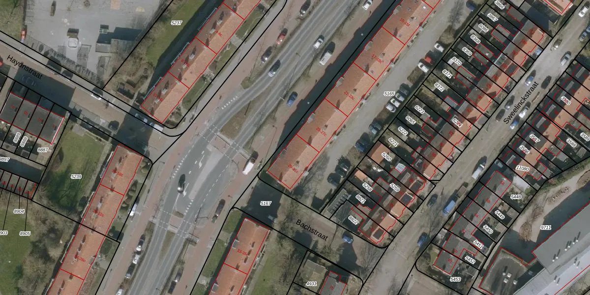 Het adres is gelegen op perceel 5165 in de sectie D en de kadastrale gemeente Leeuwarden. De kadastrale aanduiding is aldus LWD00-D-5165. De gemiddelde perceeloppervlakte in de kadastrale gemeente Leeuwarden is 1524,45 m². Dit perceel is met zijn 2430 m² dus groter dan gemiddeld. De grootste perceeloppervlakte in de kadastrale gemeente is 1,54 km². De kleinste oppervlakte bedraagt 0 m². Op het perceel zijn 36 adressen aanwezig. In de Basisregistratie Kadaster (BRK) werden de grenzen van het perceel geregistreerd op 03-11-2008.