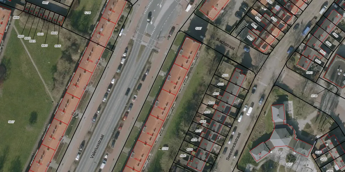 Het perceel waarop Valeriusstraat 39-b staat heeft een oppervlakte van 5275 m². Dit is een zeer groot perceel. De perceeloppervlakte wordt geregistreerd door het Kadaster. Gedetailleerde informatie over de maten van dit perceel kunt u vinden in het rapport Kadastrale kaart met maatvoering van Valeriusstraat 39-b.