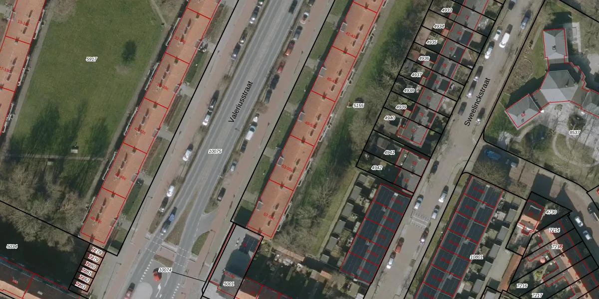 Het perceel waarop Valeriusstraat 53-b staat heeft een oppervlakte van 5275 m². Dit is een zeer groot perceel. De perceeloppervlakte wordt geregistreerd door het Kadaster. Gedetailleerde informatie over de maten van dit perceel kunt u vinden in het rapport Kadastrale kaart met maatvoering van Valeriusstraat 53-b.