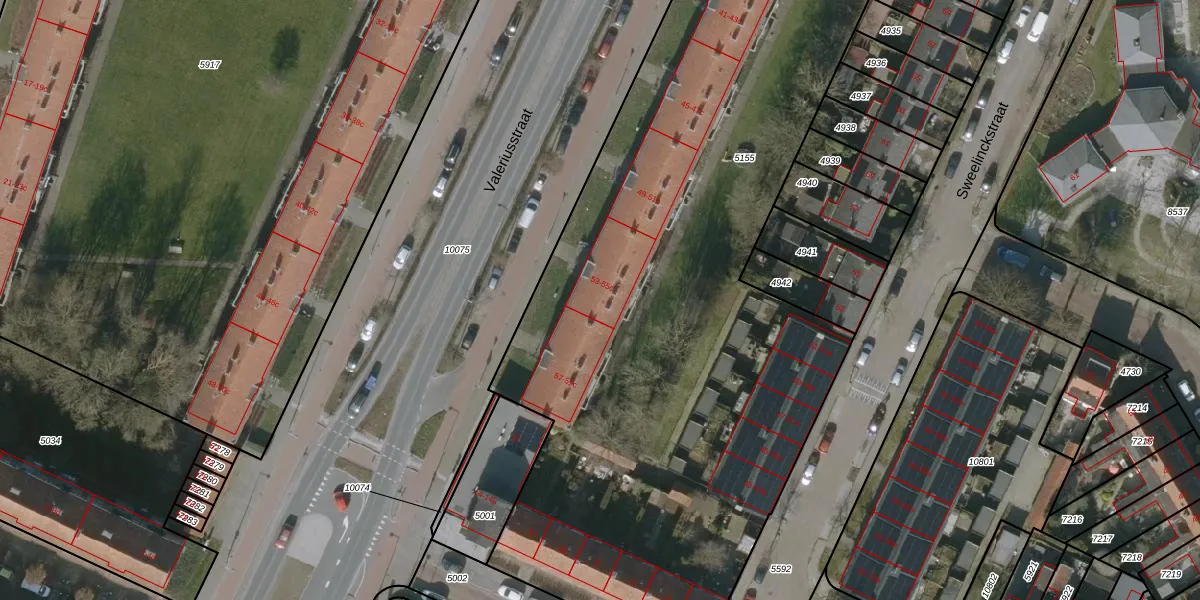 Het perceel waarop Valeriusstraat 55-b staat heeft een oppervlakte van 5275 m². Dit is een zeer groot perceel. De perceeloppervlakte wordt geregistreerd door het Kadaster. Gedetailleerde informatie over de maten van dit perceel kunt u vinden in het rapport Kadastrale kaart met maatvoering van Valeriusstraat 55-b.