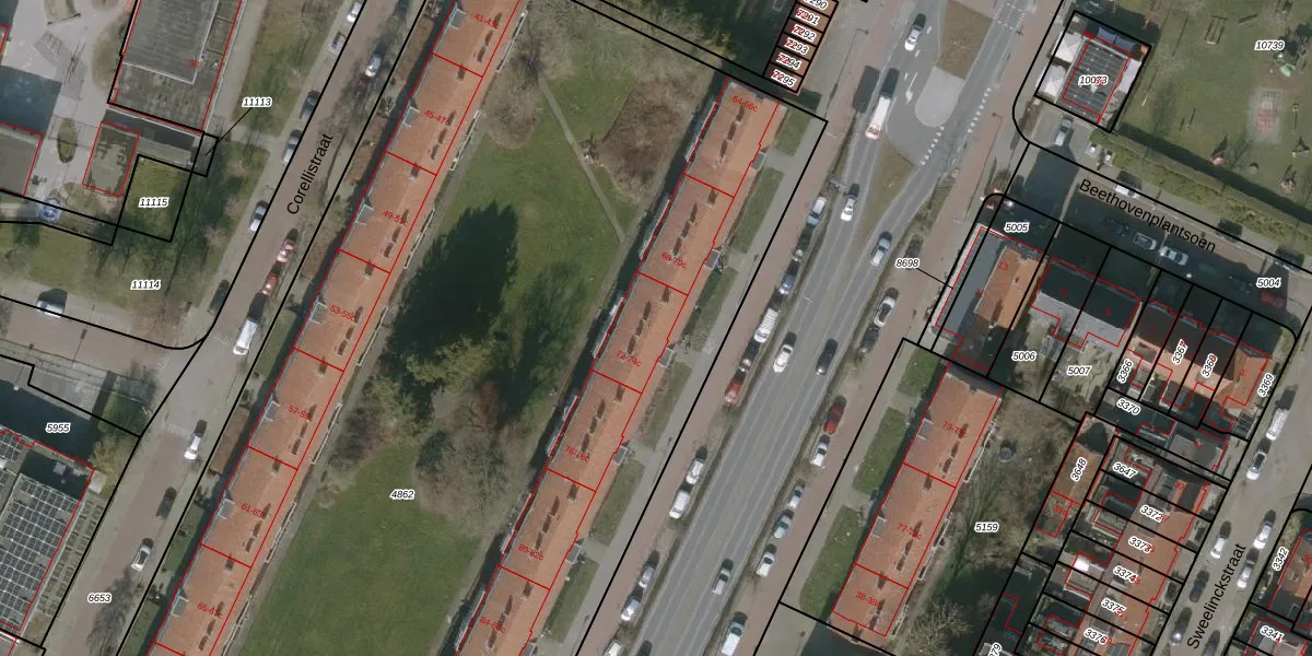 Het perceel waarop Valeriusstraat 72-b staat heeft een oppervlakte van 1,0 ha. Dit is een zeer groot perceel. De perceeloppervlakte wordt geregistreerd door het Kadaster. Gedetailleerde informatie over de maten van dit perceel kunt u vinden in het rapport Kadastrale kaart met maatvoering van Valeriusstraat 72-b.