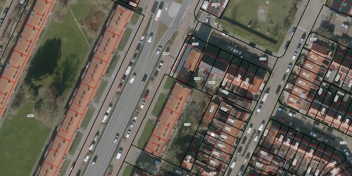 Het perceel waarop Valeriusstraat 73-b staat heeft een oppervlakte van 1338 m². Dit is een zeer groot perceel. De perceeloppervlakte wordt geregistreerd door het Kadaster. Gedetailleerde informatie over de maten van dit perceel kunt u vinden in het rapport Kadastrale kaart met maatvoering van Valeriusstraat 73-b.