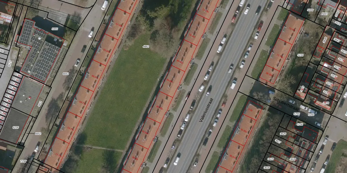 Het perceel waarop Valeriusstraat 86-b staat heeft een oppervlakte van 1,0 ha. Dit is een zeer groot perceel. De perceeloppervlakte wordt geregistreerd door het Kadaster. Gedetailleerde informatie over de maten van dit perceel kunt u vinden in het rapport Kadastrale kaart met maatvoering van Valeriusstraat 86-b.