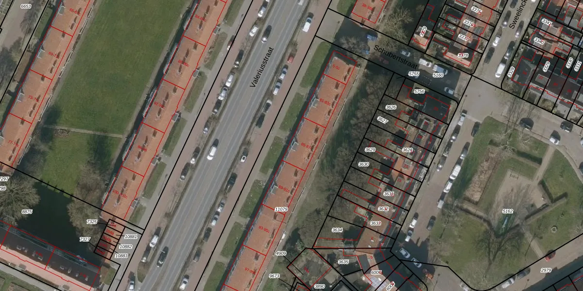 Het perceel waarop Valeriusstraat 87 staat heeft een oppervlakte van 3530 m². Dit is een zeer groot perceel. De perceeloppervlakte wordt geregistreerd door het Kadaster. Gedetailleerde informatie over de maten van dit perceel kunt u vinden in het rapport Kadastrale kaart met maatvoering van Valeriusstraat 87.