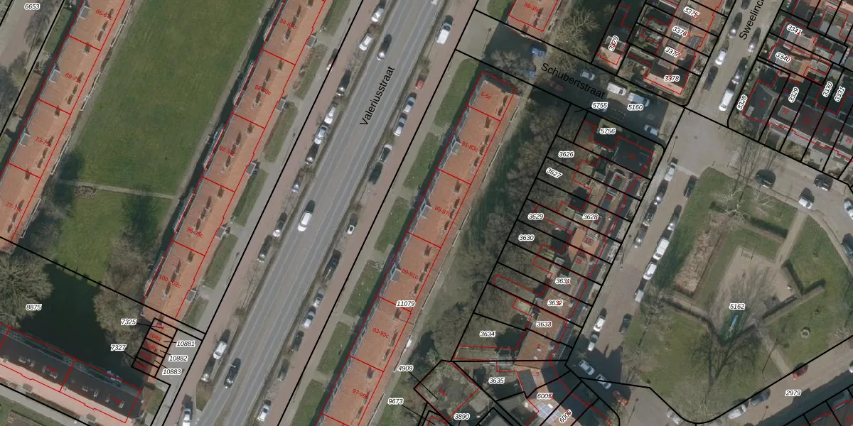Het perceel waarop Valeriusstraat 87-b staat heeft een oppervlakte van 3530 m². Dit is een zeer groot perceel. De perceeloppervlakte wordt geregistreerd door het Kadaster. Gedetailleerde informatie over de maten van dit perceel kunt u vinden in het rapport Kadastrale kaart met maatvoering van Valeriusstraat 87-b.