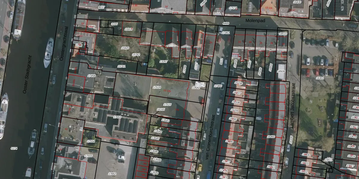 Het perceel waarop van Cronenburchstraat 12-a staat heeft een oppervlakte van 630 m². Dit is een groot perceel. De perceeloppervlakte wordt geregistreerd door het Kadaster. Gedetailleerde informatie over de maten van dit perceel kunt u vinden in het rapport Kadastrale kaart met maatvoering van van Cronenburchstraat 12-a.