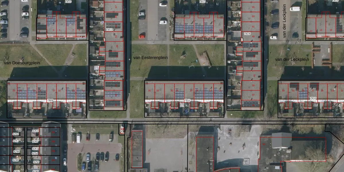 van Eesterenplein 31 is gelegen op kadastraal perceel LWD00E7812. Deze kadastrale aanduiding is uniek en wordt gebruikt door het Kadaster om eigendomsrechten en andere zakelijke rechten vast te leggen. Het perceel maakt onderdeel uit van de kadastrale gemeente Leeuwarden.