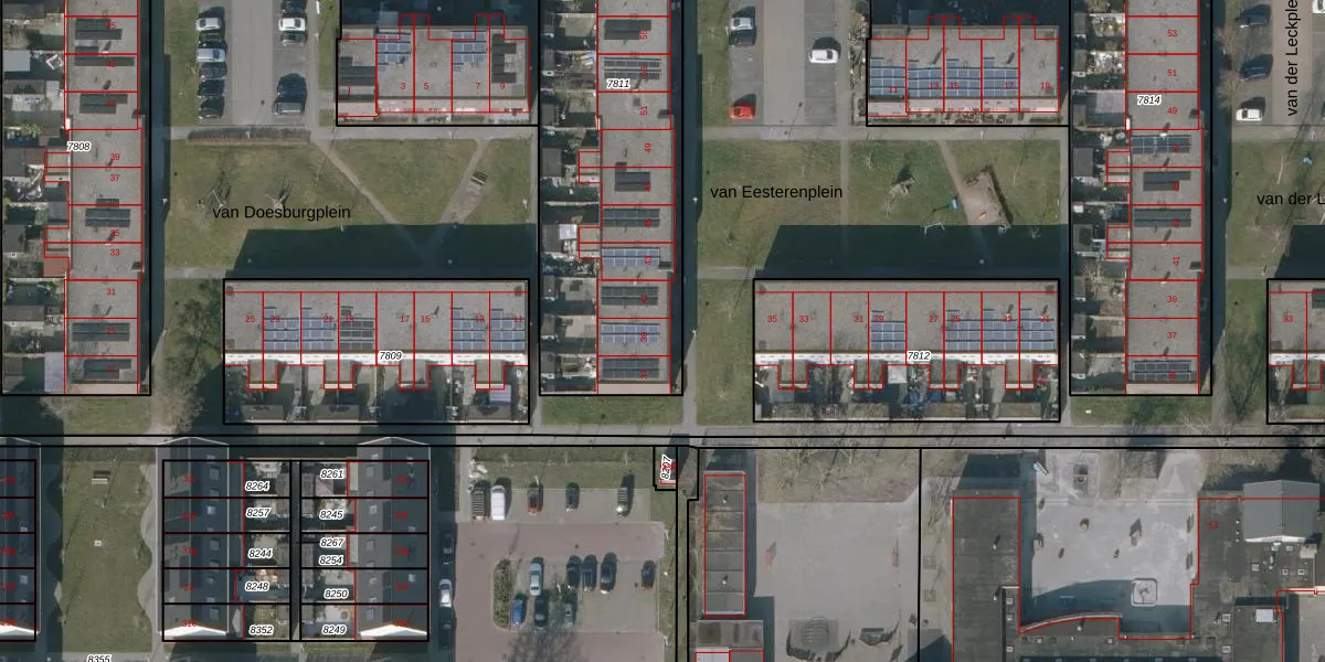 van Eesterenplein 39 is gelegen op kadastraal perceel LWD00E7811. Deze kadastrale aanduiding is uniek en wordt gebruikt door het Kadaster om eigendomsrechten en andere zakelijke rechten vast te leggen. Het perceel maakt onderdeel uit van de kadastrale gemeente Leeuwarden.