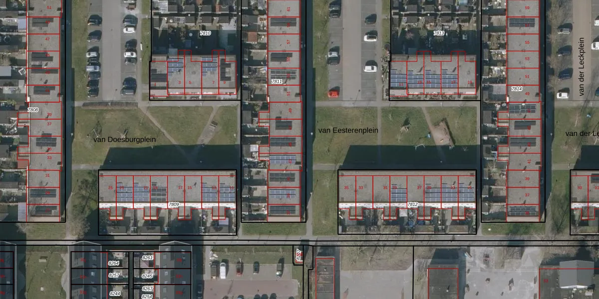 van Eesterenplein 45 is gelegen op kadastraal perceel LWD00E7811. Deze kadastrale aanduiding is uniek en wordt gebruikt door het Kadaster om eigendomsrechten en andere zakelijke rechten vast te leggen. Het perceel maakt onderdeel uit van de kadastrale gemeente Leeuwarden.