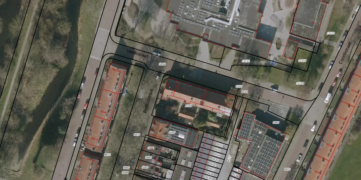 Het perceel waarop Verdistraat 9 staat heeft een oppervlakte van 1006 m². Dit is een zeer groot perceel. De perceeloppervlakte wordt geregistreerd door het Kadaster. Gedetailleerde informatie over de maten van dit perceel kunt u vinden in het rapport Kadastrale kaart met maatvoering van Verdistraat 9.
