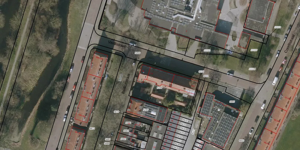 Het perceel waarop Verdistraat 9-b staat heeft een oppervlakte van 1006 m². Dit is een zeer groot perceel. De perceeloppervlakte wordt geregistreerd door het Kadaster. Gedetailleerde informatie over de maten van dit perceel kunt u vinden in het rapport Kadastrale kaart met maatvoering van Verdistraat 9-b.
