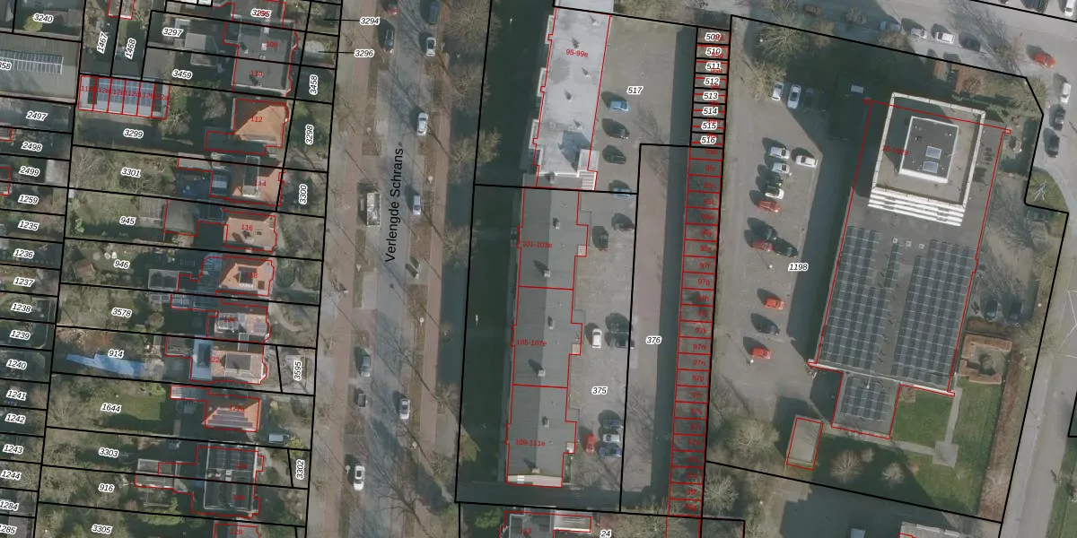 Verlengde Schrans 103-b is gelegen op kadastraal perceel HZM00F375. Deze kadastrale aanduiding is uniek en wordt gebruikt door het Kadaster om eigendomsrechten en andere zakelijke rechten vast te leggen. Het perceel maakt onderdeel uit van de kadastrale gemeente Huizum.