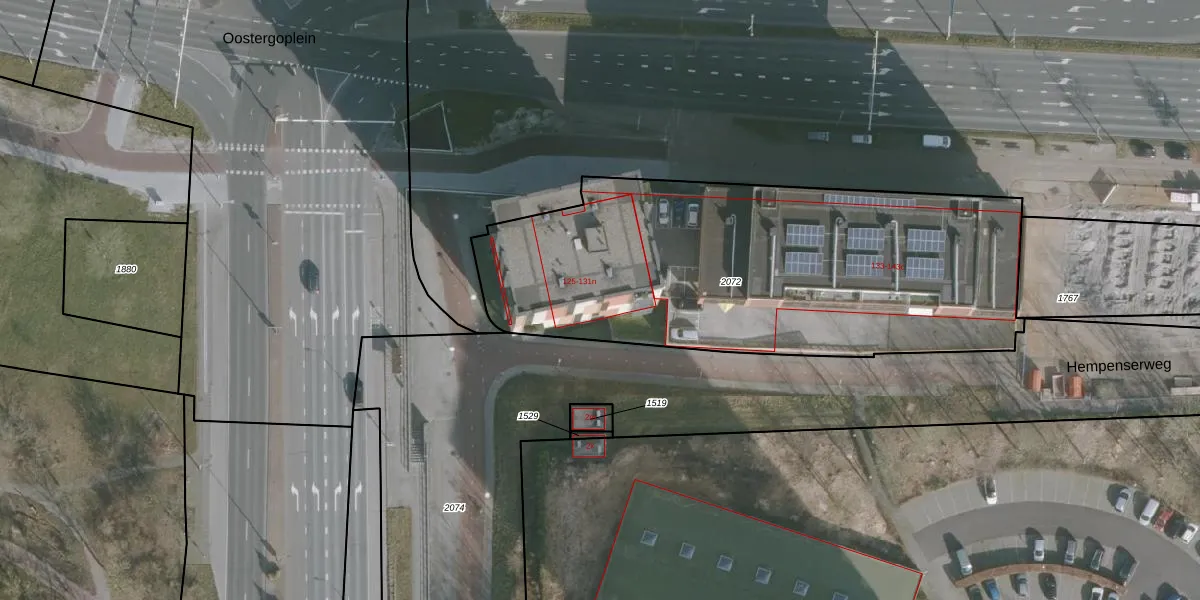 Het perceel waarop het adres ligt is HZM00-F-2072. De afkorting 'HZM00' staat voor kadastrale gemeente Huizum. Het perceel is met 2320 m² relatief groot. Het gemiddelde ligt in de kadastrale gemeente Huizum op 1504,31 m². De grootste perceeloppervlakte in de kadastrale gemeente is 75,1 ha. De kleinste oppervlakte bedraagt 0 m². Er zijn 78 adressen aanwezig op het perceel. In de Basisregistratie Kadaster (BRK) werden de grenzen van het perceel geregistreerd op 03-10-2016.